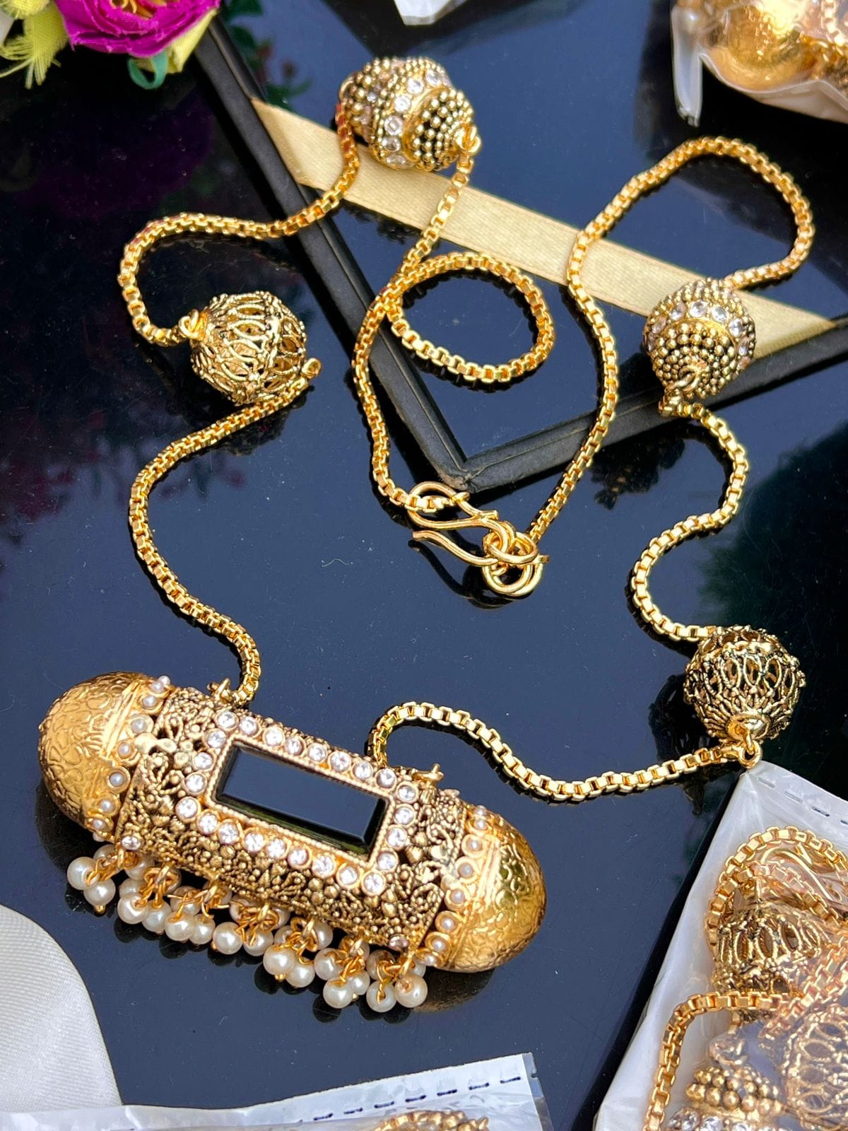 Preserve your jewelry’s shine: avoid water, perfume, and chemicals, and clean with a soft cloth. Receive your order in our complimentary luxury packaging, including a jewelry box, card, and bag, with free Pakistan-wide delivery. We also ship worldwide, including to Australia, the USA, UK, and Canada.